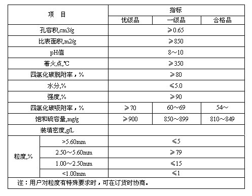 溶剂回收活性炭技术指标:(执行标准GB/T 7702-1997)